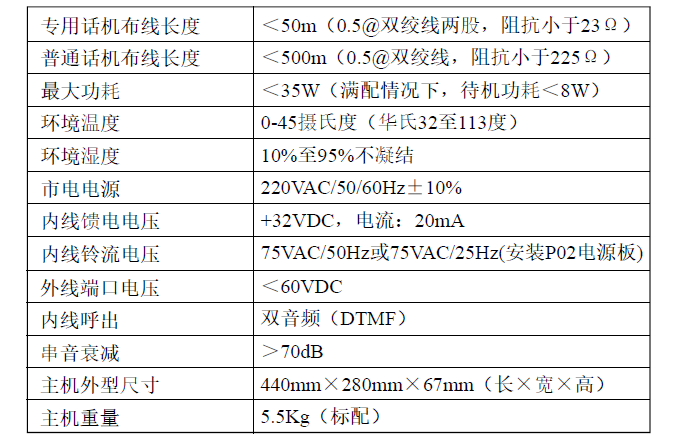 1)基本配置:4外线24分机,最大可扩容到8外线72分机或4外线80分机